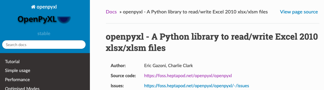 site : openpyxl.readthedocs.io/en/stable/index.html