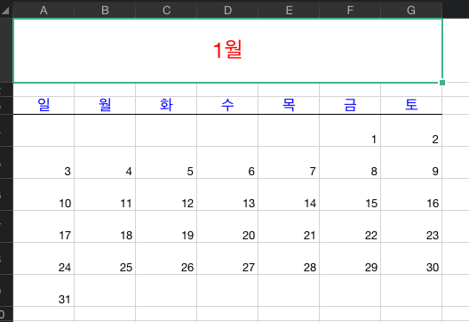 wb.save(filename="달력_" + str(year) +".xlsx")