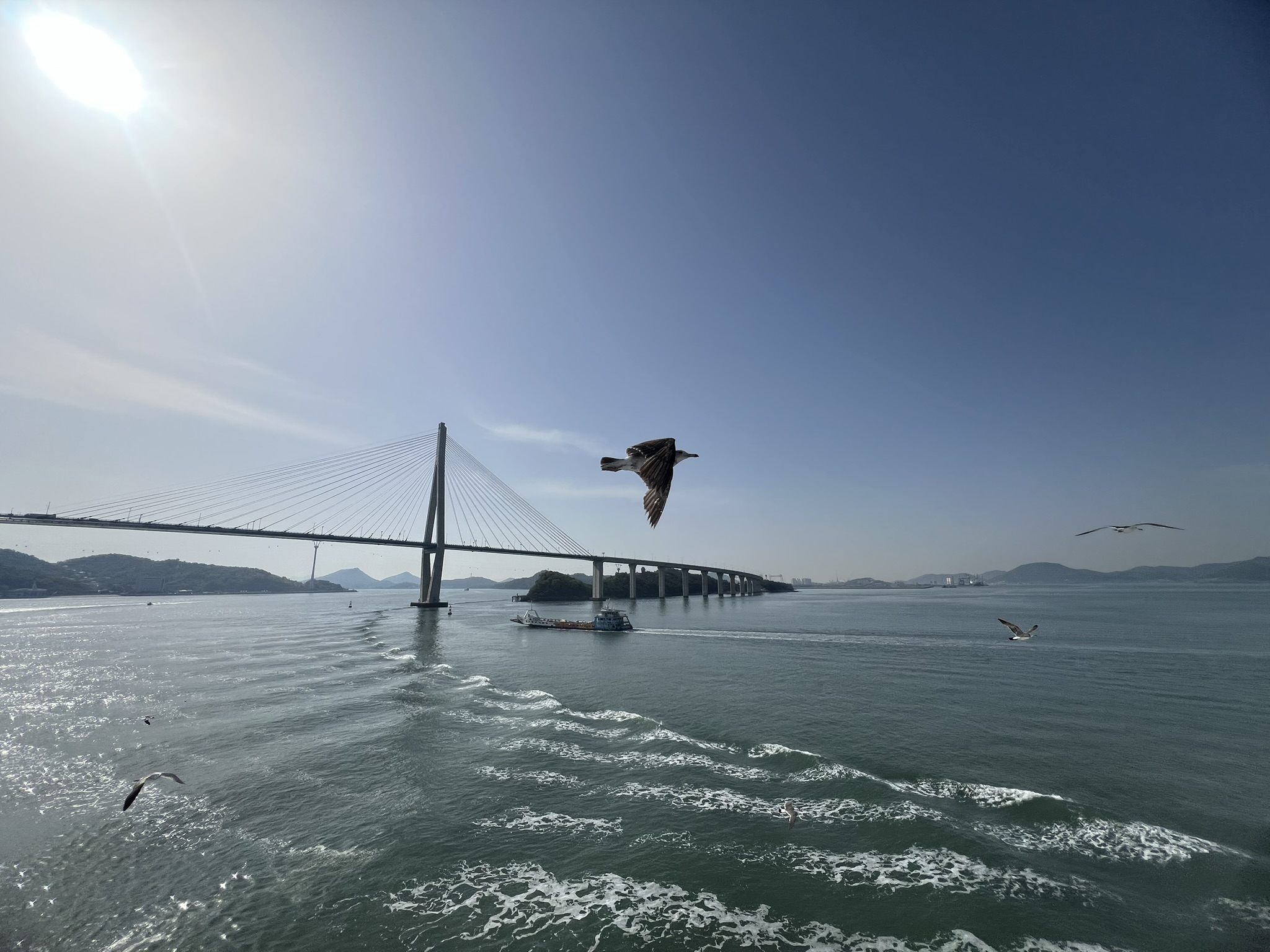 목포대교전후로 갈매기들이 모여 들어서, 아이들과 미리 사둔 새우깡을 맘껏 뿌려줬어요.