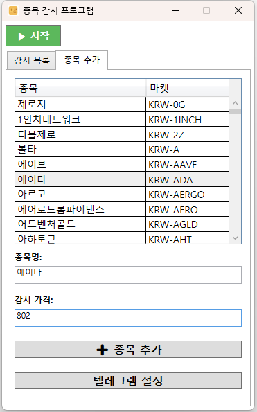 2. 시작버튼을 누르면 자동으로 가격을 모니터링합니다.